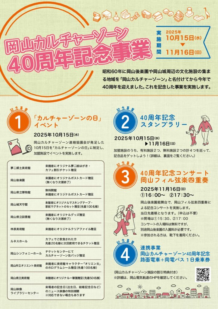 昭和60年に岡山後楽園や岡山城周辺の文化施設の集まる地域を「岡山カルチャーゾーン」と名付けてから今年で40周年を迎えました。